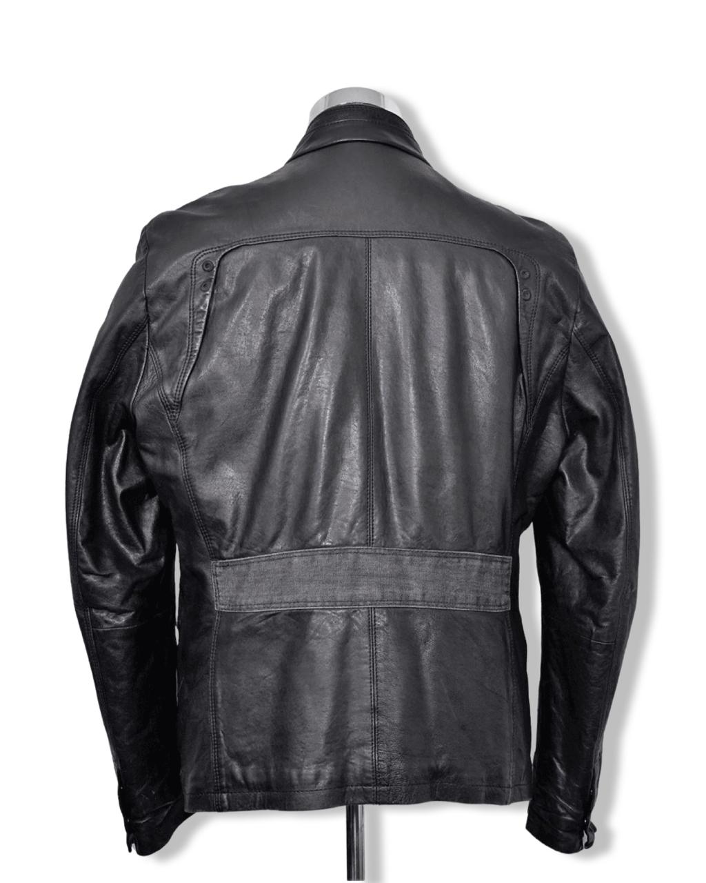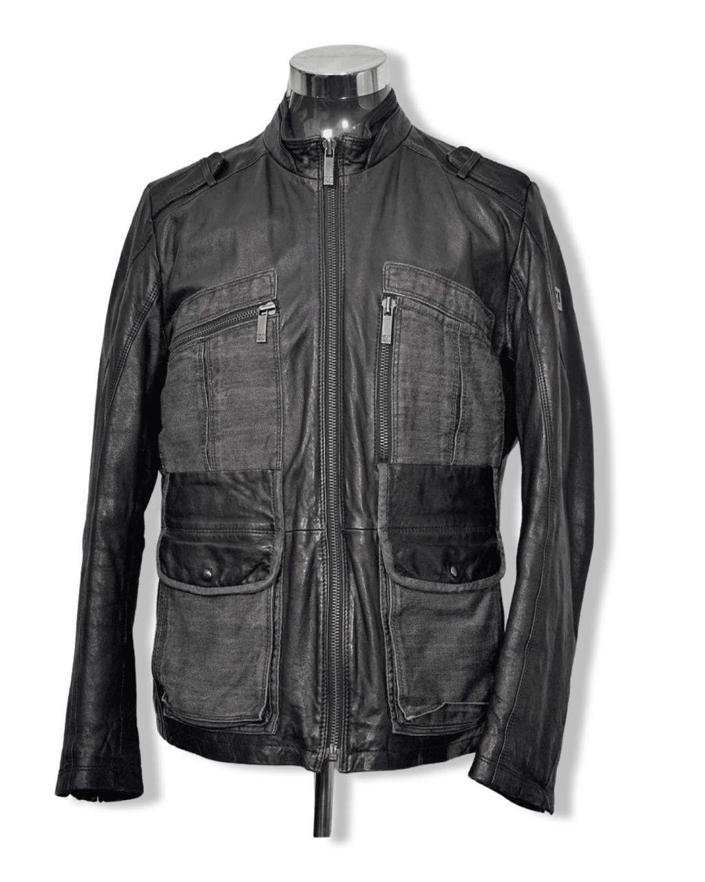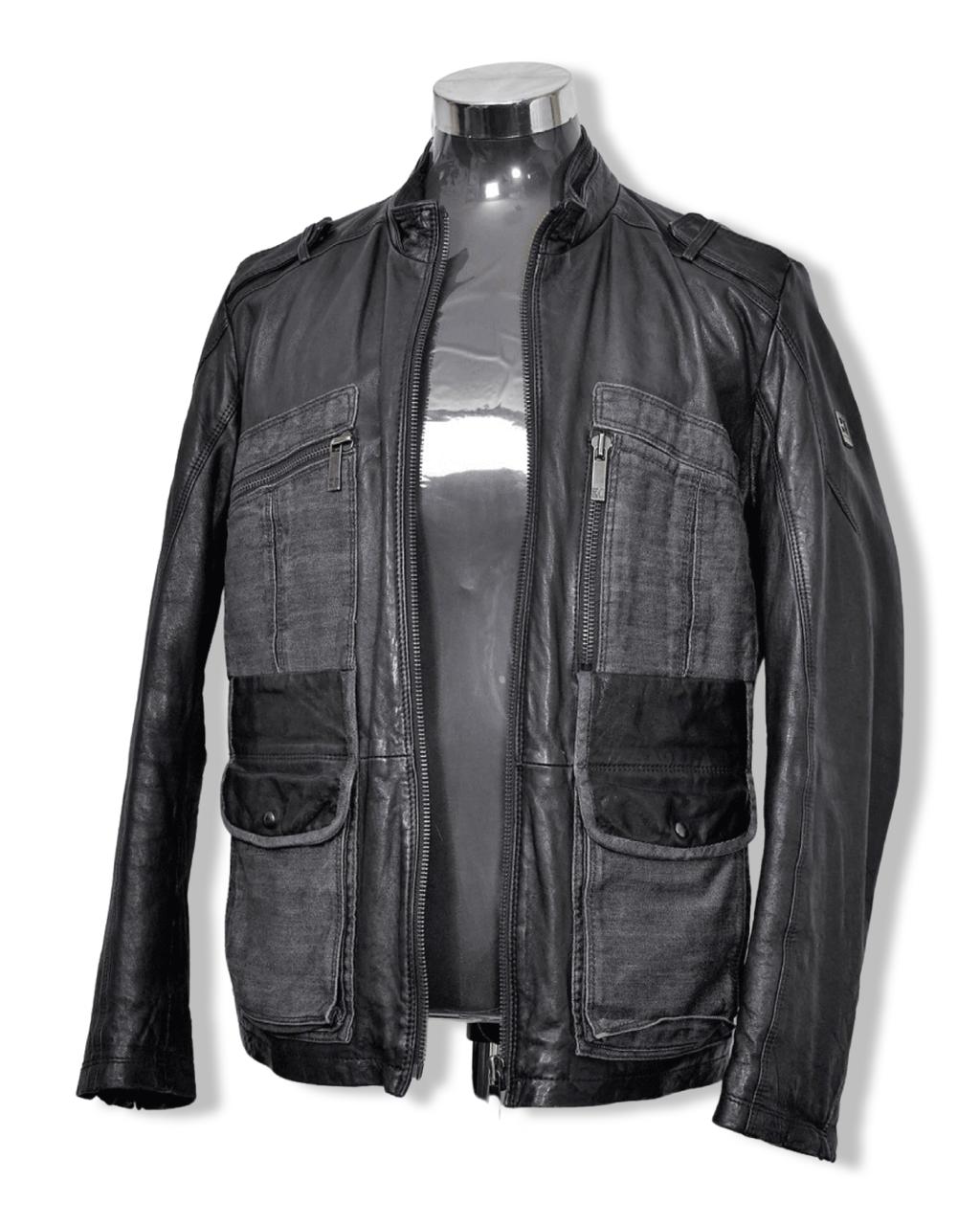 Chaquetas de CueroEsta Hermosa Chaqueta 3/4 de Cuero con Aplicaciones de Mezclilla Gris, desarrollada por la afamada marca alemana Hugo Boss, es una pieza única y de colección. El estado es extraordinario.