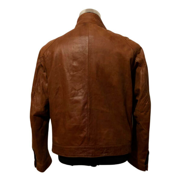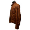 Hermosa chaqueta de «vera pelle», en un tono marrón tostado. Un artículo único. Corte a la cintura con bolsillos exteriores y cuello mao con hebilla en tono broce. Fabricada en Italia para la Marca AB.